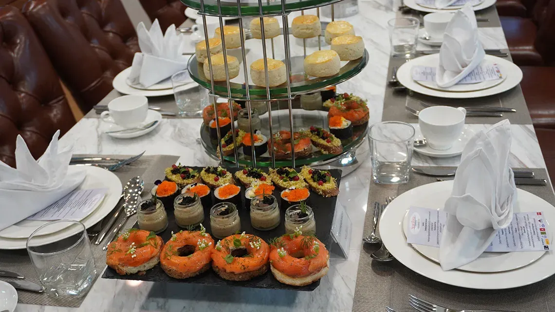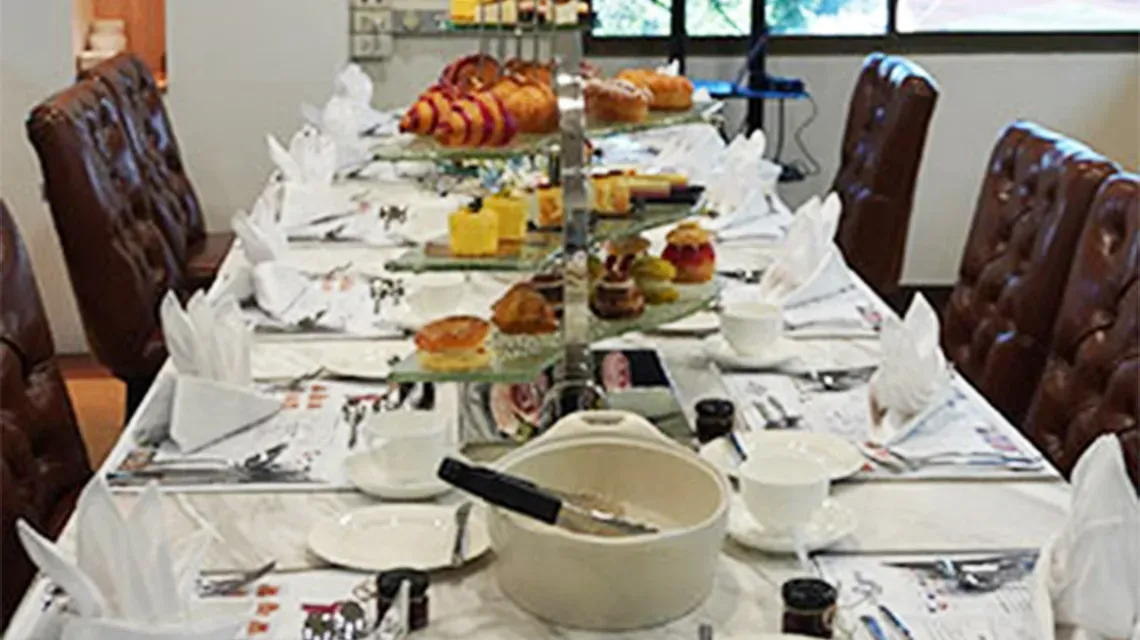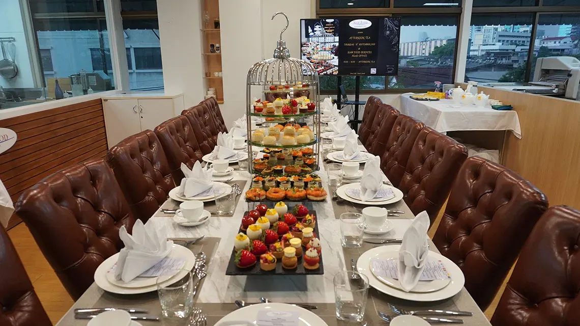 เป้าหมายของเราคือการเพิ่มมูลค่าให้กับพันธมิตรทางธุรกิจของเรา ในปี 2020 เราได้พัฒนาชุดน้ําชายามบ่ายเพื่อขายโดยเบเกอรี่ร้านอาหารและพันธมิตรโรงแรมของเรา ที่นี่มีทาร์ตสําเร็จรูปของหวานขนมอบแซนวิชและขนมน้ําชายามบ่ายซึ่งทั้งหมดสร้างขึ้นโดยเชฟขนมอบองค์กรของเรา Preecha Voralert รายการสามารถซื้อได้เป็นชุดชาที่สมบูรณ์, หรือเบเกอรี่ลูกค้าสามารถเลือกแต่ละรายการที่จะทําให้ขึ้นของตัวเองที่ไม่ซ้ํากันและส่วนบุคคลชุดชา, สําหรับการขายให้กับลูกค้าของพวกเขาของ ในการเปิดตัวชุดน้ําชายามบ่ายเหล่านี้เราจัด Chef's Table สําหรับลูกค้าเบเกอรี่เพื่อให้พวกเขาสามารถเห็นการนําเสนอขนมอบอย่างมืออาชีพและลิ้มรสส่วนผสมรวมถึงเนยวิปปิ้งครีมและครีมชีส นอกจากชุดน้ําชายามบ่ายแล้ว เรายังเสิร์ฟคานาเป้ Foie Gras คานาเป้และมินิบีฟเบอร์เกอร์ที่สร้างโดยสหรัติตั้งไทย เชฟคาวขององค์กร มีชุดน้ําชายามบ่ายและส่วนผสมอาหารให้บริการที่ สยามฟูด เซอร์วิส .